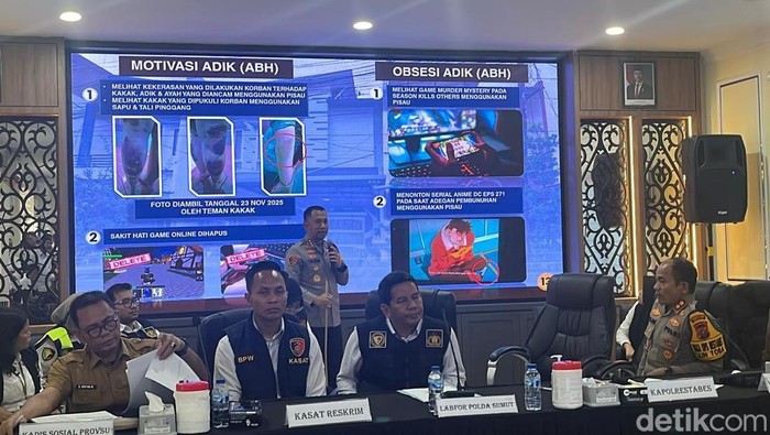“Bagaimana obsesi si korban dalam hal melakukan tindak pidananya? adik (AI) melihat game Murder Mystery pada season kills others menggunakan pisau. Makanya korban pada saat itu menggunakan pisau di dalam melakukan tindak pidananya,” kata Calvijn saat konferensi pers, Senin (29/12/2025).