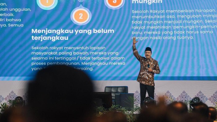 Menurut Gus Ipul, Program Sekolah Rakyat yang digagas Presiden Prabowo Subianto merupakan miniatur pengentasan kemiskinan yang dilakukan secara terstruktur, terpadu, dan berkelanjutan. Para siswa tidak hanya mendapatkan pendidikan berkualitas secara gratis, tetapi juga fasilitas pendukung seperti Cek Kesehatan Gratis (CKG) dan Makan Bergizi Gratis (MBG).