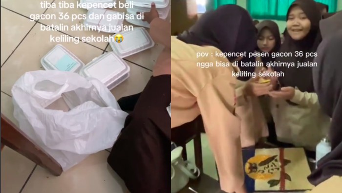 Siswa itu dibantu teman-temannya menawarkan Mie Gacoan. Kemudian melabeli kemasan Mie Gacoan sesuai nama pemesan. Beruntung, mie itu ludes dibeli oleh satu sekolah.