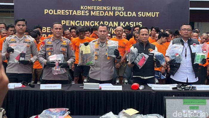 Kapolrestabes Medan Kombes Jean Calvijn Simanjuntak saat paparan di Polrestabes Medan, Sabtu (18/10/2025).