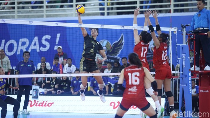 Pertandingan kedua tim berlangsung di GOR Voli Sumut Sport Center, Deli Serdang, Sumatera Utara (Sumut), Minggu (18/1/2026). Pantauan infoSumut, sorak sorai suporter terlihat menggelegar di saat kedua tim berlaga. Di hari terakhir Proliga 2026 di Medan, tim voli putri Medan Falcons mendapat dukungan antusias dari warga yang turut meramaikan dan menyaksikan laga tersebut.