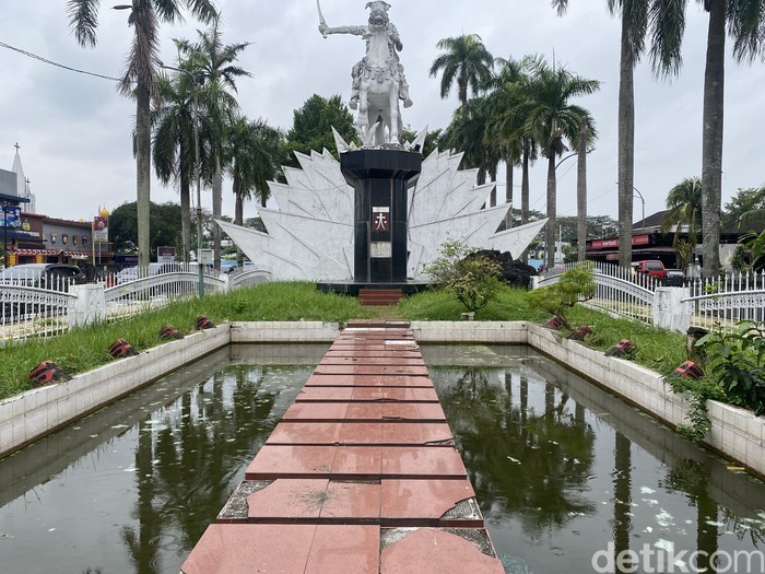 Pantauan infoSumut di lokasi, Kamis (18/12/2025), pagar besi hitam di area monumen tampak ambruk dan sebagiannya hilang. Selain itu, kolam di depan patung pahlawan nasional tersebut berwarna hijau pekat karena dipenuhi lumut.