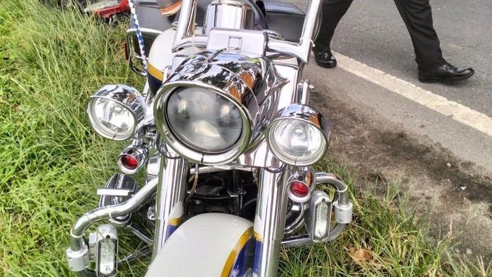 “Diduga kurang hati-hati saat mendahului mobil barang truk trailler yang berada searah di depannya, sehingga hilang kendali. Pada saat hilang kendali tersebut, pengendara Harley Davidson terjatuh ke arah kiri dan sepeda motor jatuh ke kanan. Pada saat pengendara terjatuh ke kiri terlindas ban belakang sebelah kanan truk,” jelasnya.