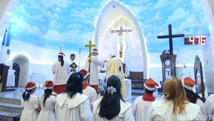 Uskup Agung Medan Kornelius Sipayung memimpin misa malam Natal di Gereja Katolik Santa Perawan Maria Tak Bernoda atau Katedral Medan. Dalam kotbahnya, uskup berpesan agar umat yang hadir membuka ruang untuk sesama dan Allah.