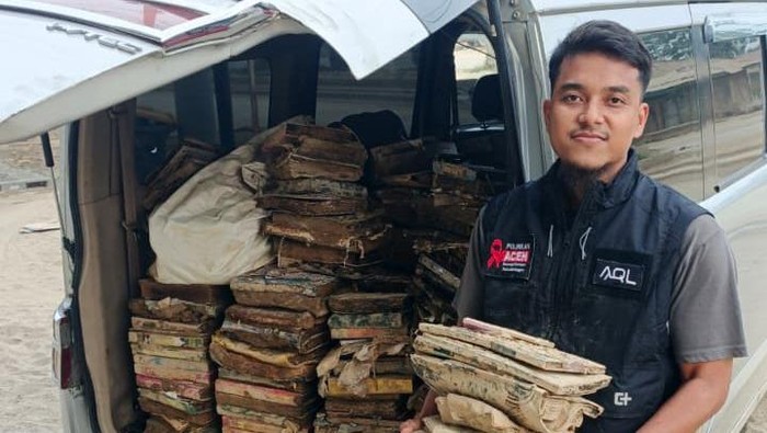 “Jumlah Al-Qur’an rusak yang kami kumpulkan di tiga masjid sekitar 350 eksemplar. Kondisinya berlumpur, kertas sudah menyatu, lengket dan hampir rata-rata gembung akibat terendam air serta lumpur,” tuturnya.